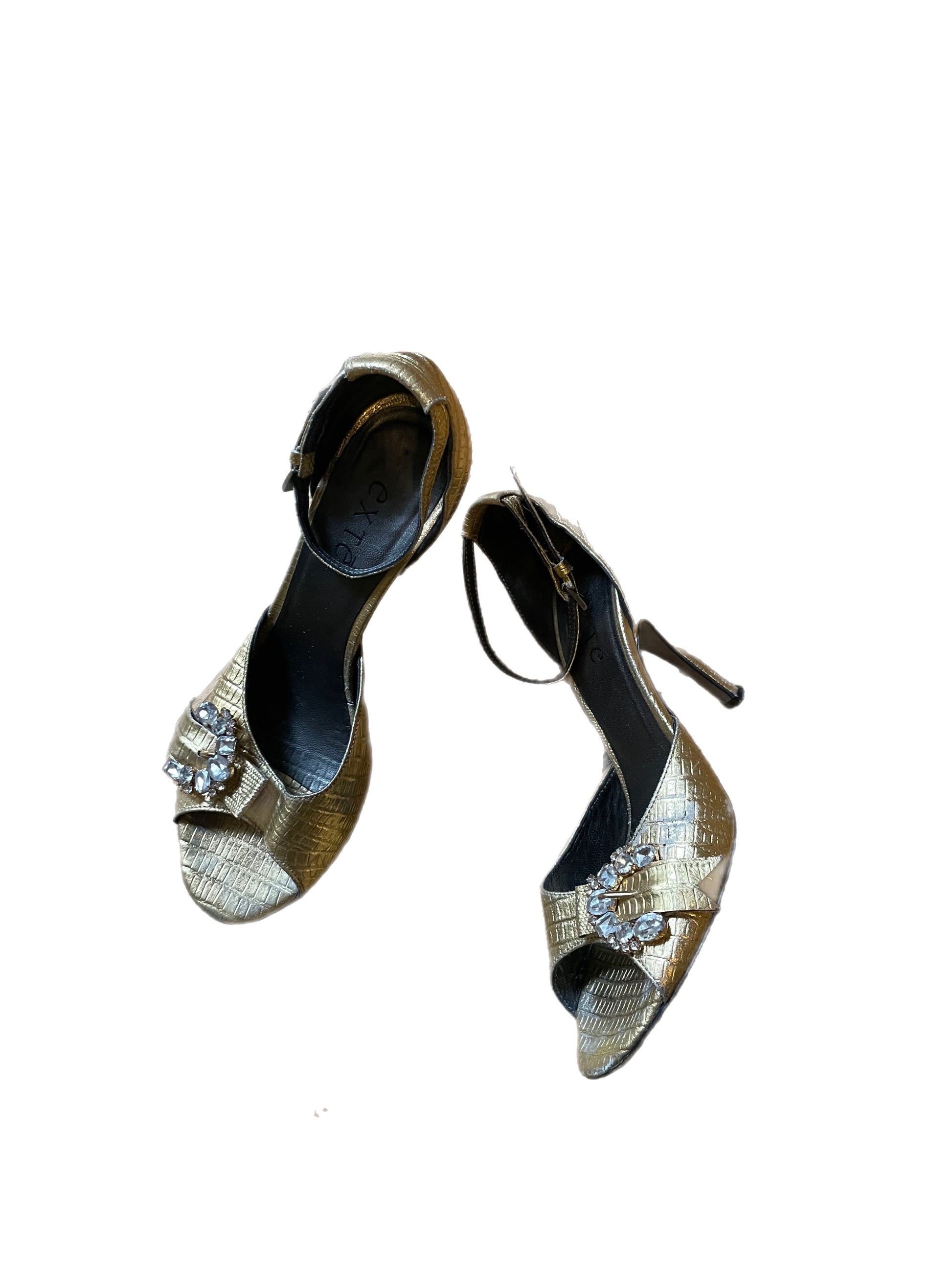 EXTE signature heels with rhinestone buckle - color gold - good preloved condition. size 39.